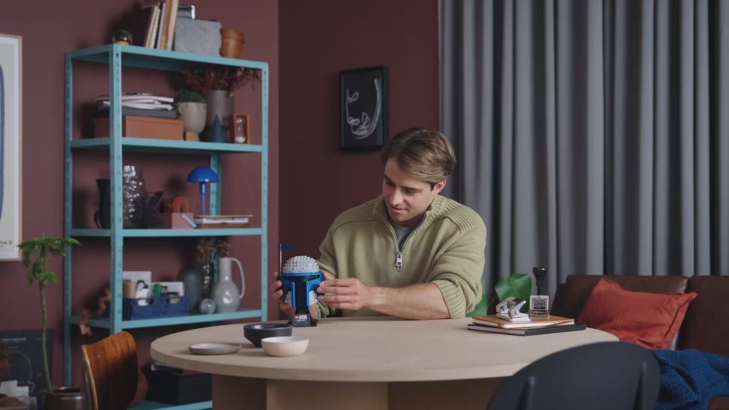 • Crea una pieza de exposición basada en Star Wars™: Recrea las características totalmente únicas del casco de Jango Fett, incluido el telémetro ajustable, y exponlo en el soporte construible con placa de identificación