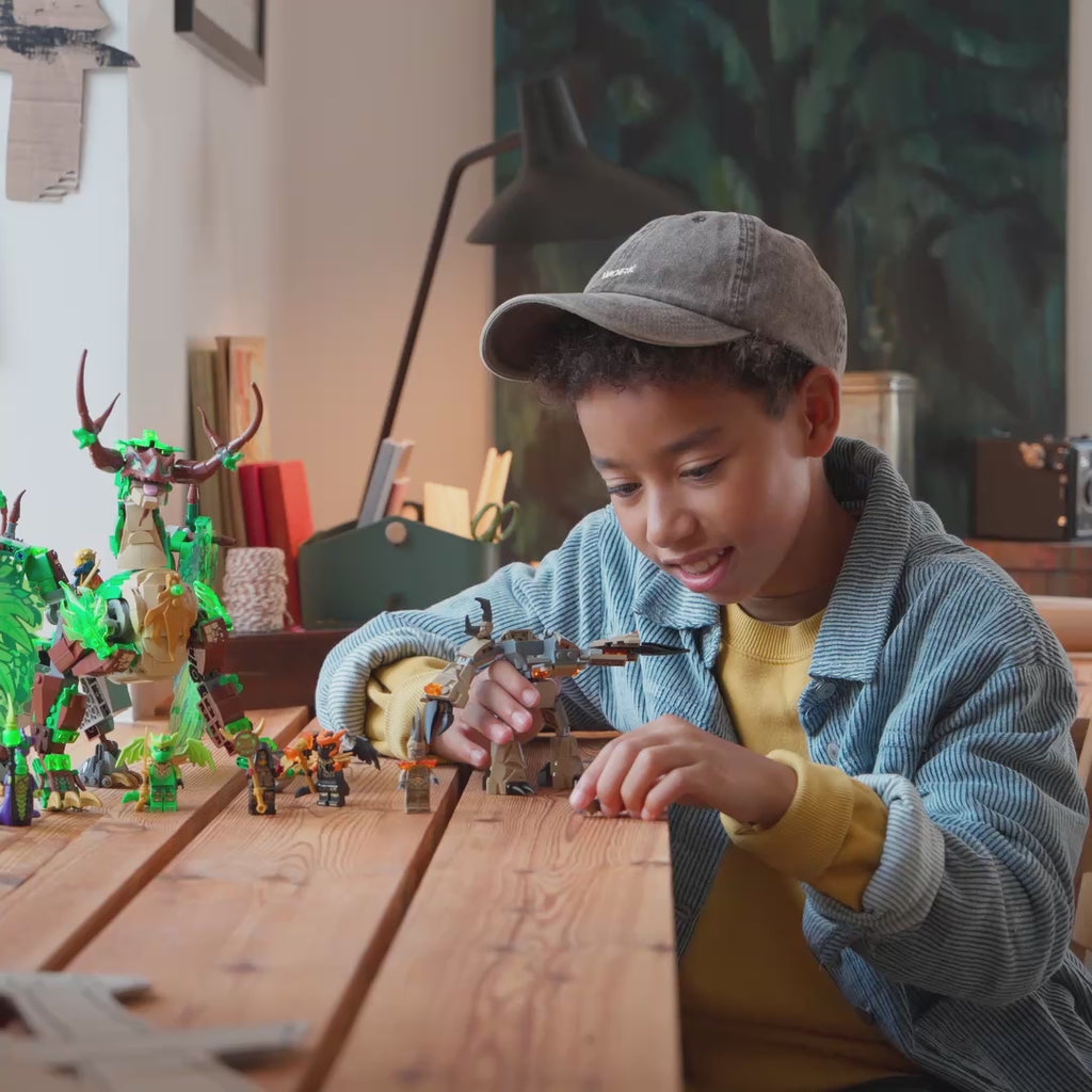 A los niños y las niñas a partir de 9 años les encantará construir el juguete ninja LEGO® NINJAGO® Dragón de la Vida (71859) y luego recrear escenas de la temporada 4 de NINJAGO: El renacer de los dragones. Este dragón tiene alas desplegables, posee mandíbula, cabeza, cuello, piernas, tobillos, garras y cola articulados, y cuenta con montura para una minifigura. El juego incluye un modelo complementario con un árbol y una planta que gira y oculta una espada dorada, además de un minimodelo de un meca articulado con cabina para una minifigura. Hay 8 minifiguras: los ninja Zane, Sora y Arin, Lloyd Forma Dragón y Cole Forma Dragón, y el trío de villanos formado por el Monstruo Ácido, el Monstruo de Tierra y el líder lealista. Los sets LEGO NINJAGO transportan a los fans de los ninja a un mundo de fantasía para jugar e imaginar con sus héroes. Cada juego se puede construir usando la app LEGO Builder, que ofrece instrucciones digitales interactivas y mucho más. El set contiene 1050 piezas.