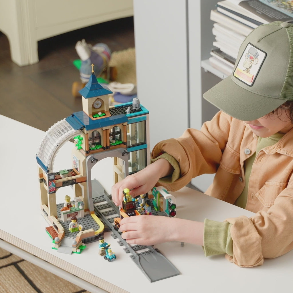 - Estación de tren de juguete: Crea el escenario perfecto para el juego imaginativo con el detallado set de construcción LEGO® City Estación Central de Ferrocarril para mayores de 7 años
