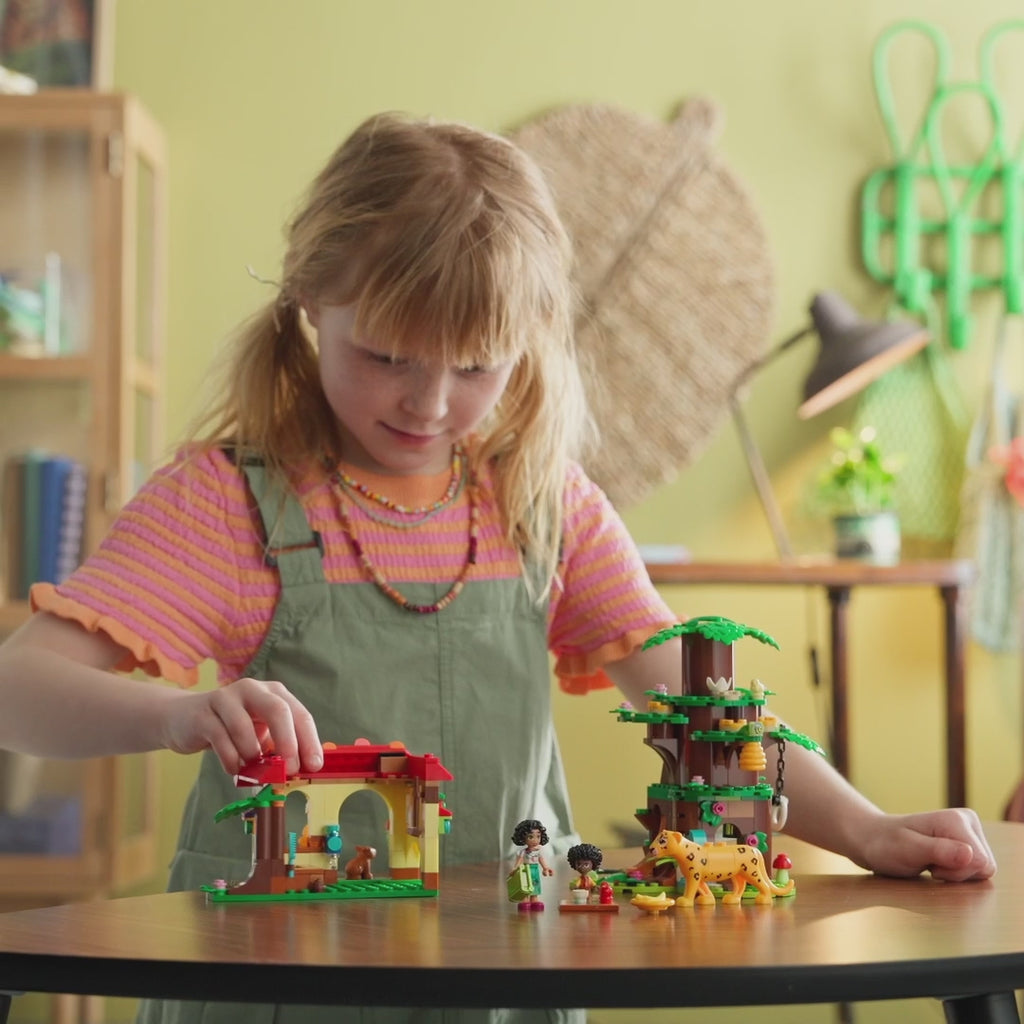 - Personajes de la película Disney Encanto: Incluye un micropersonaje LEGO® ǀ Disney de Antonio, un minipersonaje LEGO ǀ Disney de Mirabel, al jaguar Parce y otras 6 figuras LEGO ǀ Disney de animales