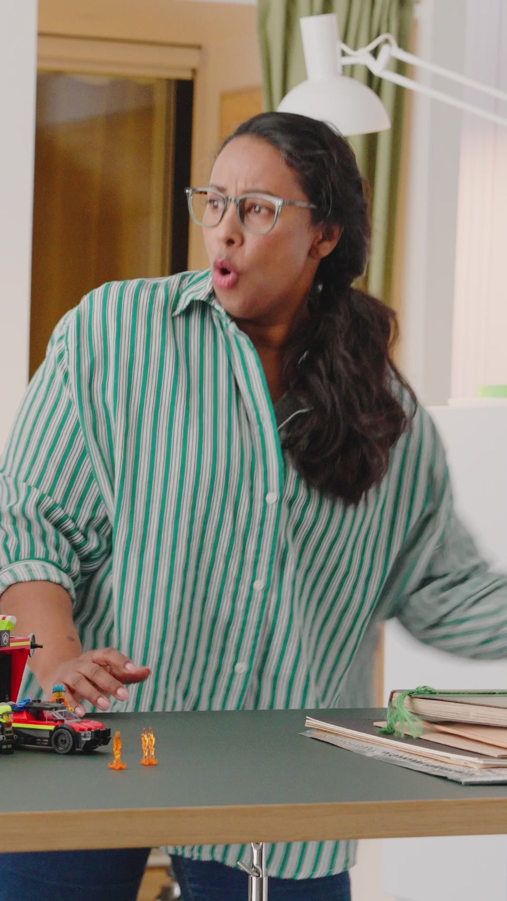 - Funciones realistas para jugar a recrear situaciones cotidianas: Los niños manejan la grúa, tiran escombros de juguete por el tubo de desescombro y abren las puertas de los garajes para guardar los vehículos de policía y bomberos
