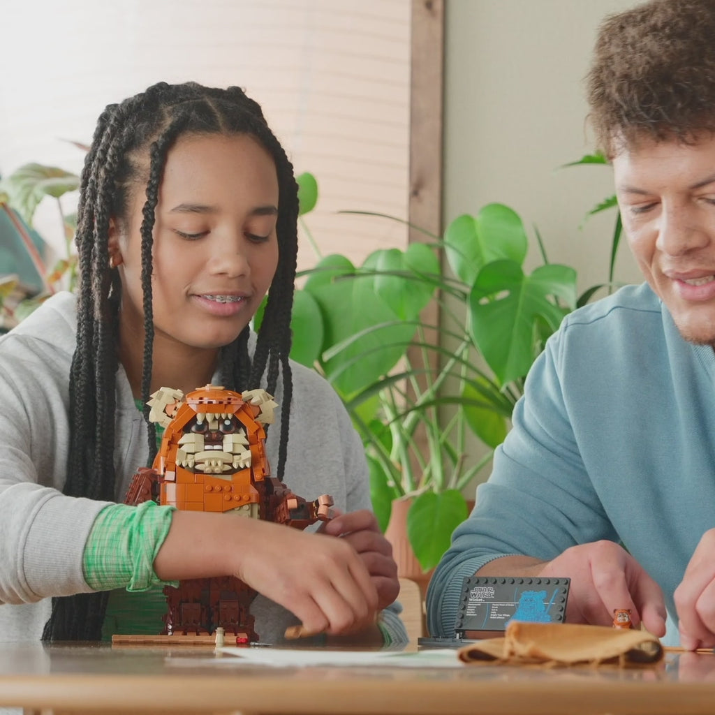 - Set para construir y exponer: El set incluye también una minifigura LEGO® Star Wars™ de Wicket el Ewok, además deuna placa informativa